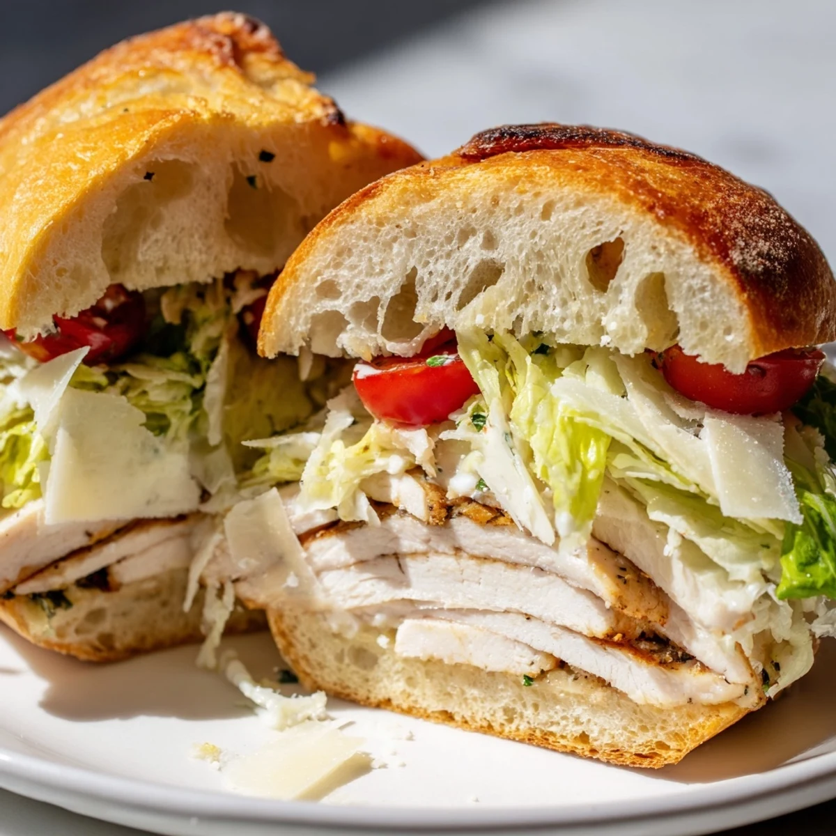 This hearty sandwich transforms the classic Caesar salad into a satisfying handheld meal. Grilled chicken breasts are seasoned perfectly and paired with crisp shredded romaine, shaved Parmesan, and a rich homemade Caesar dressing made with mayonnaise, lemon, and Worcestershire. Everything gets layered onto butter-toasted ciabatta rolls for that ideal crunch. The entire dish comes together in just 30 minutes, making it perfect for lunch or a quick weeknight dinner. Add cherry tomatoes for extra freshness or crispy bacon for more protein.