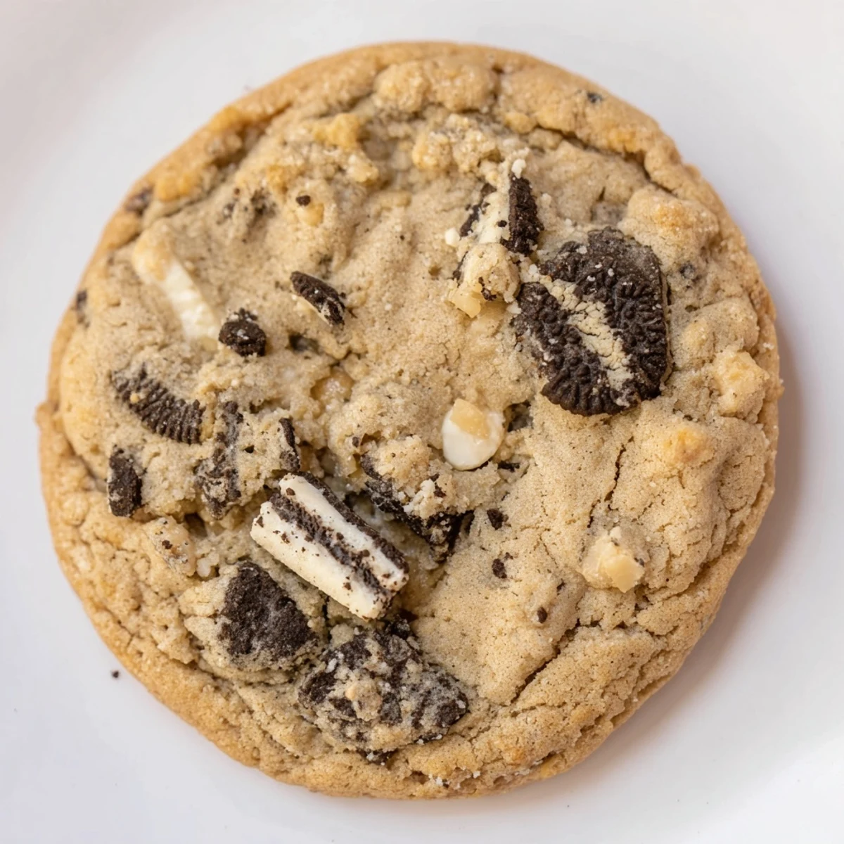 These soft, chewy cookies combine crushed chocolate sandwich cookies with creamy white chocolate chips for the ultimate cookies 'n cream experience. Each bite delivers the perfect balance of crunchy cookie pieces and smooth white chocolate throughout a tender, buttery dough.