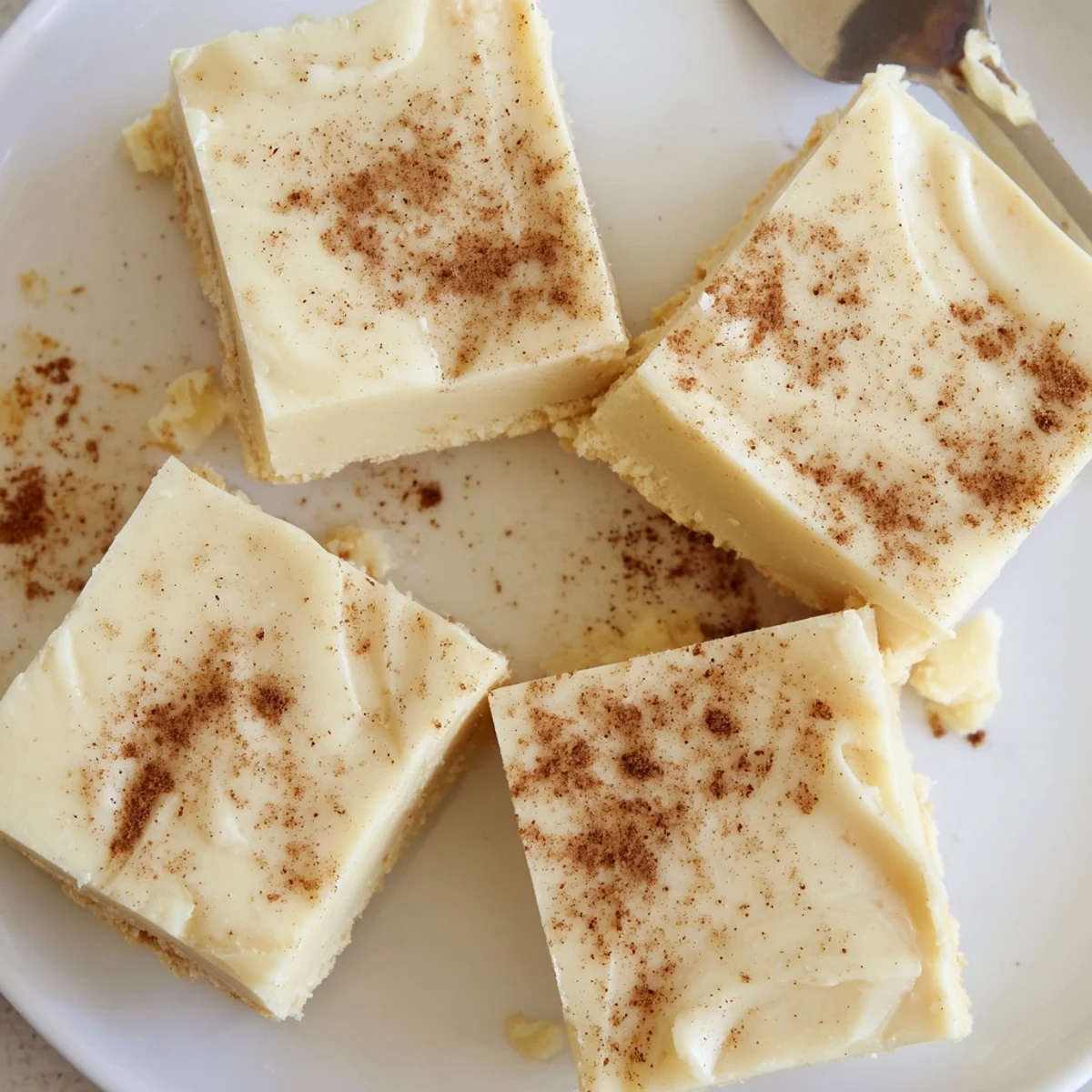 Start by combining butter, eggnog and sugar, bringing to a gentle boil, then simmer briefly to thicken. Remove from heat and stir in white chocolate, nutmeg, cinnamon and vanilla until glossy. Pour into a lined 8x8 pan, chill at least 2 hours, then cut into 36 squares. Fold in chopped nuts or a splash of spiced rum for variation; store chilled up to one week. For cleaner slices, chill until very firm and warm the knife between cuts; grate extra nutmeg on top before serving.