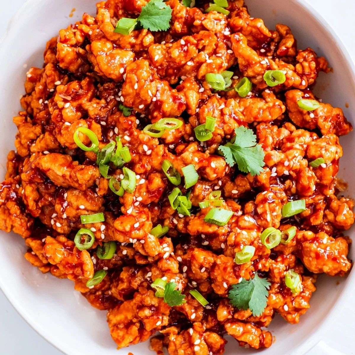 - 1 lb ground chicken: Lean but still juicy, this absorbs every drop of that firecracker sauce while staying tender enough to melt in your mouth