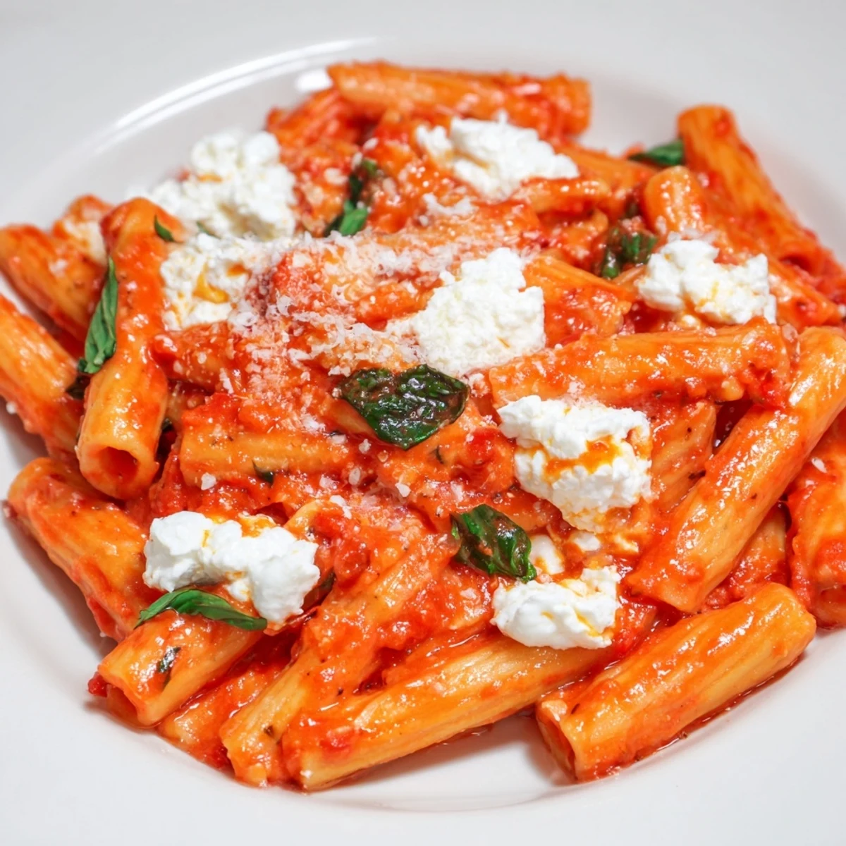 This comforting Italian pasta brings together al dente penne with a rich garlicky tomato sauce, finished with creamy dollops of fresh ricotta and torn basil leaves. The dish comes together in just 30 minutes, making it perfect for busy weeknights when you want something satisfying yet simple.